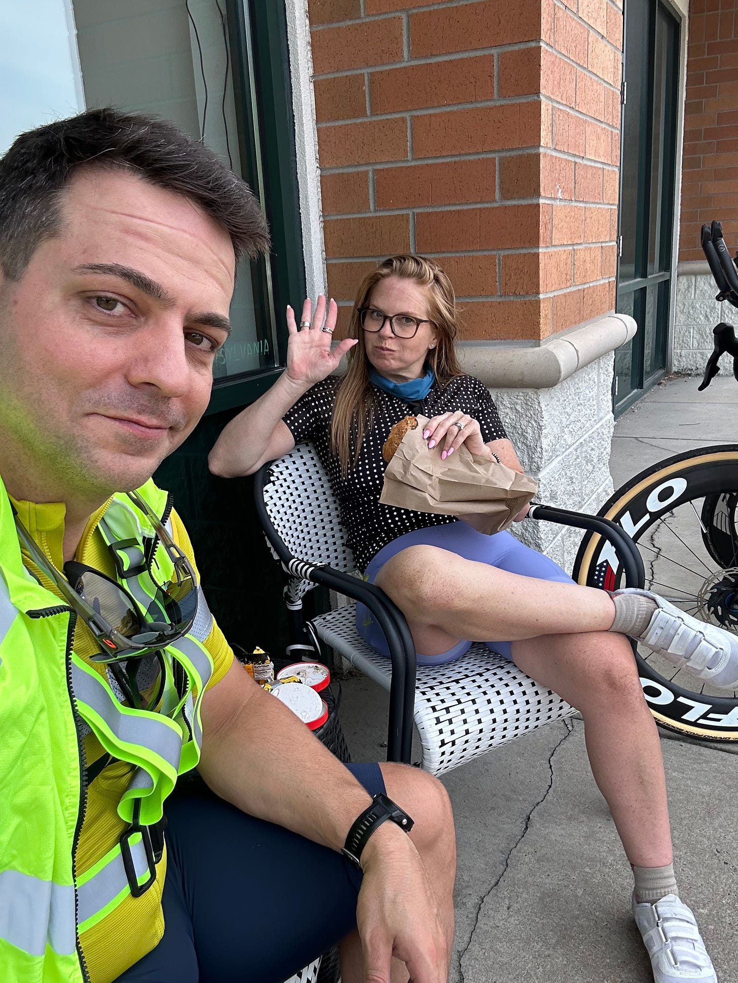 Chrissy was spent. We hail from the flatlands of Southern NJ, and she wasn't prepared for the North Pittsburgh hills. She had done 3,000ft of climbing in 30 miles, and I was concerned for her safety. Before throwing in the towel based on even the most severe bonk, it's always well advised to stop, sit, drink, and eat. So, we got some caffeine and carbs in us and waited to see if her state of mind changed.
